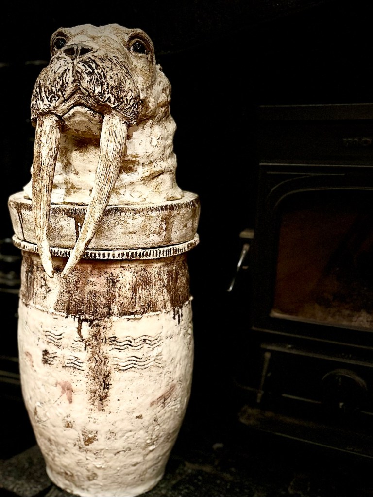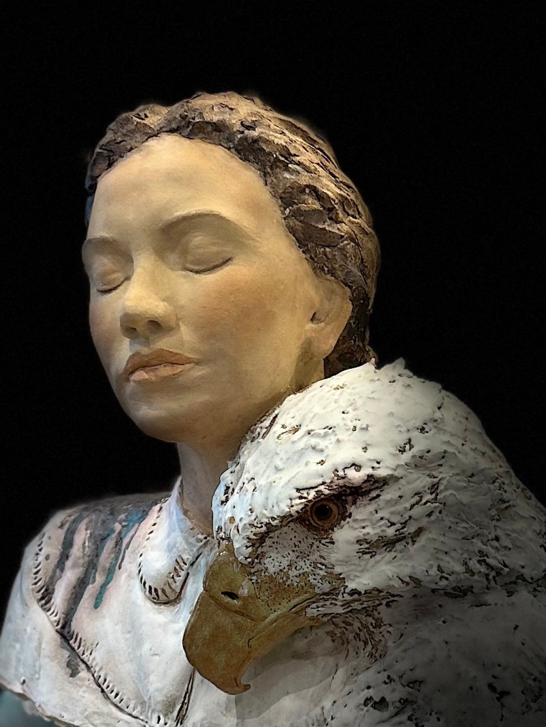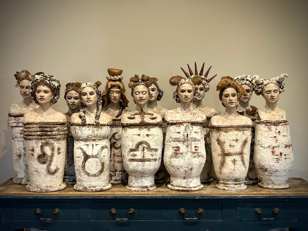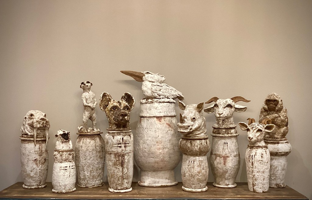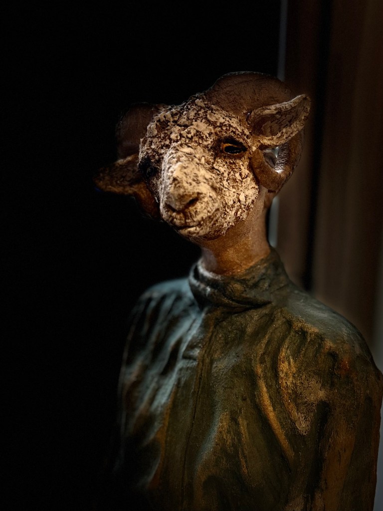 My figures often wear animal masks or are closely entwined with animals, not as decoration, but as companions, or extensions of the self. This closeness invites questions about identity, instinct, and transformation. I work with texture, gesture, and surface to evoke a sense of time and emotion, each piece carrying its own quiet story, as though unearthed from a forgotten fable.